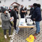 Wir, die Capoanerinnen, haben heute auch Gesichtsmasken an Immigranten verteilt. Die Miteinwanderer begrüßten unseren Einsatz und die Kinder machten unser stundenlanges Stehen in der Kälte erlebnisreich. Wir hatten sehr gute Gespräche am Stand. Die Notwendigkeit des Tragens einer Facemask, das Händewaschen, das Einhalten der vorgeschriebenen Regeln zur Corona-Pandemie waren Themen, über die wir sprachen. Außerdem gaben wir ihnen Hand-outs mit Bildern, die das Corona-Hygiene-Konzept illustrierten.